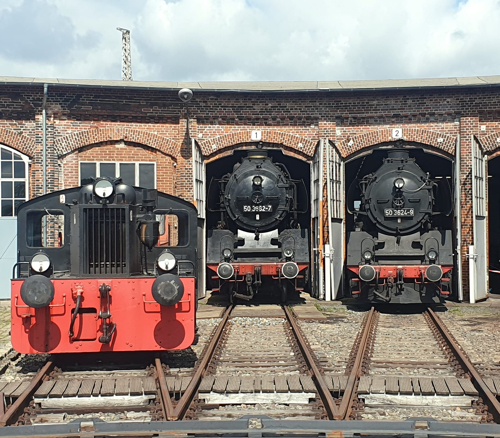 Zu den genannten 208 Exemplaren gehört auch unsere 50 3682, die 1939 bei Krauss-Maffei in München gebaut und von der Deutschen Reichsbahn als 50 255 in Betrieb genommen wurde. Sie hatte ein bewegtes Leben. So wurde sie von 1948 bis 1952 im sogenannten Kolonnendienst eingesetzt. Dabei wurden Maschinen und Güter aller Art, die von der Sowjetunion als Reparationsleistungen nach dem Krieg beansprucht wurden, bis an die polnisch/russische Grenze gefahren, wo sie in Güterzüge mit russischer Breitspur umgeladen wurden. Solche Fuhren dauerten mitunter Wochen.