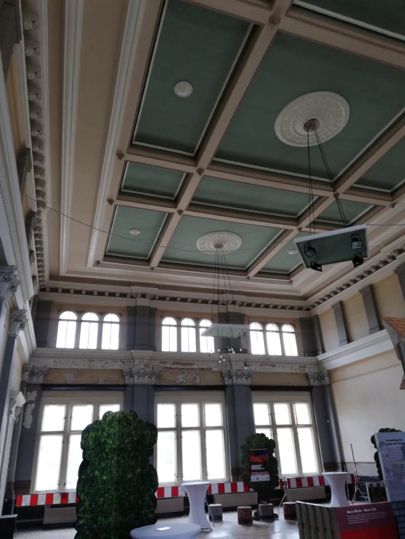 Heute war jedoch nochmal Gelegenheit, die „alte Pracht“ zu bewundern. Die im Erdgeschoss liegende Speisehalle, die einigen unserer Gäste vielleicht noch als Mitropa-Gaststätte in Erinnerung ist, konnte dabei besichtigt werden. Da ein Gleis aus unserem Museumsgelände bis fast vor die Tür des Bahnhofs führt, nutzen wir die Gelegenheit, um auch auf den Historischen Lokschuppen aufmerksam zu machen und boten kurzerhand Führerstandsmitfahrten auf einer unserer Dieselloks an.