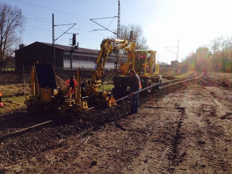 Am 9.3. 2015 wurden die Gleise des Bauabschnitts 1 gestopft, d.h. der Schotter zwischen den Gleisen verdichtet. Die Bilder zeigen die dafür eingesetzte Maschine und das Ergebnis.