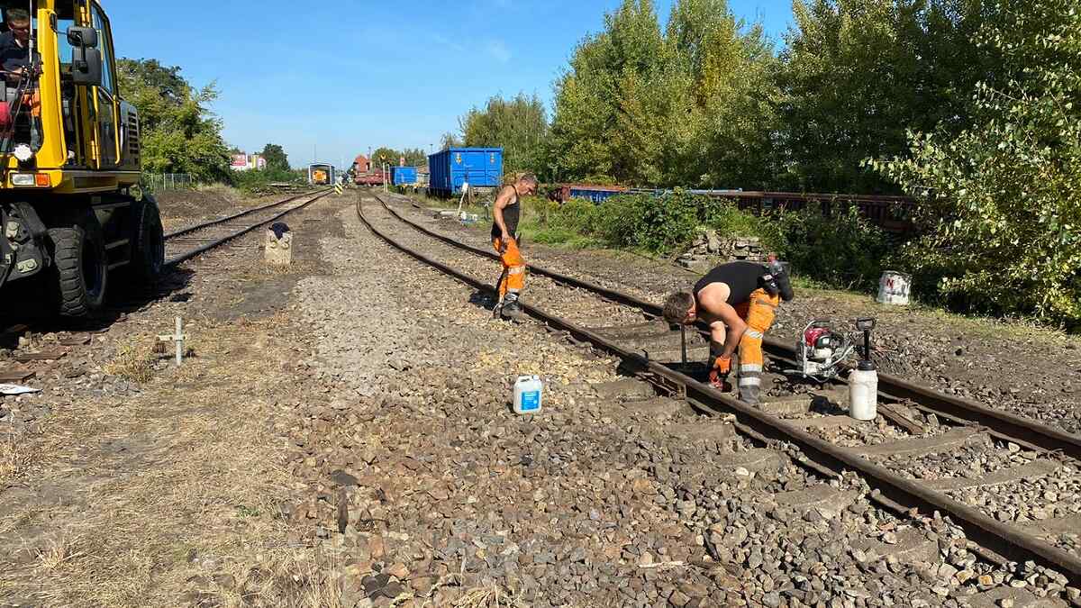 Mit Erschrecken haben wir festgestellt, dass unser letzter Newsletter schon wieder etliche Wochen alt ist. Das möchten wir hiermit ändern und Ihnen, liebe Freunde des Historischen Lokschuppens Wittenberge, eine kleine Übersicht über unsere Aktivitäten im Oktober 2023 geben. Der Monat war gestopft voll von Aktivitäten. Aber fangen wir von vorne an. Kontinuierlich arbeiten wir an der Erhaltung unserer Gleisanlagen. Denn was nützt das schönste Museum, wenn man die Fahrzeuge darin nicht sicher bewegen kann. Diesmal wurden Arbeiten auf der sogenannten Magdeburger Bahnhofseite durchgeführt. Dabei wurden von einer Gleisbaufirma viele Schwellen aus Holz gegen solche aus Beton getauscht. Außerdem wurden Reste von Weichen ausgebaut, die nicht mehr benötigt werden.
