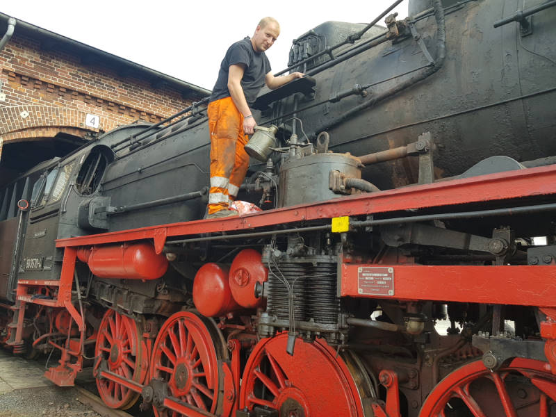 Dann wurde die Lok aus dem Schuppen gezogen und alle Schmierstellen wurden abgeölt