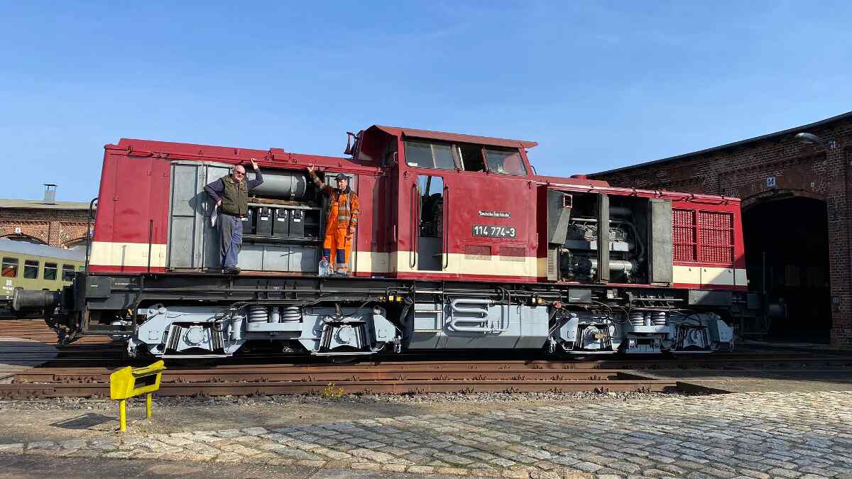 Die Hauptuntersuchung unserer 114 774 steht auch kurz vor dem Abschluss. Hier wurden alle Nebenaggregate kontrolliert und die Batterien geladen, damit der Motor demnächst wieder gestartet werden kann.