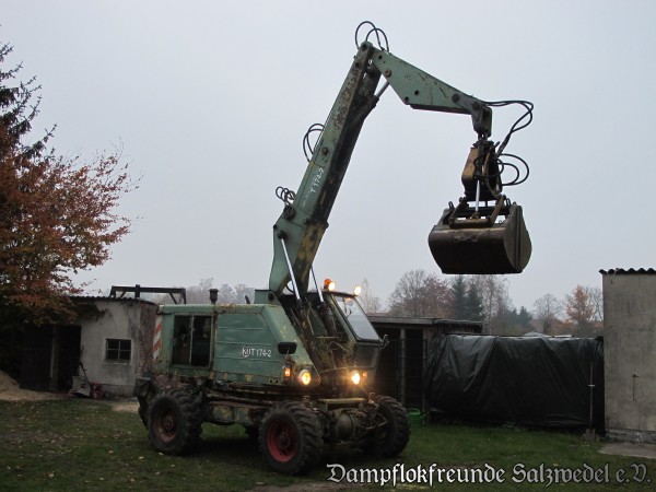 Noch ein weiterer Transport hat Wittenberge erreicht. Da im späteren Museumsbetrieb teilweise schwere Lasten bewegt und Lokomotiven bekohlt werden müssen, wurde eine Bagger des Typs T174 des Hersteller VEB Weimar-Werk, Weimar erworben. Der Bagger ist voll betriebsfähig und wird beim Entladen von Transporten aus Salzwedel gute Dienste leisten.