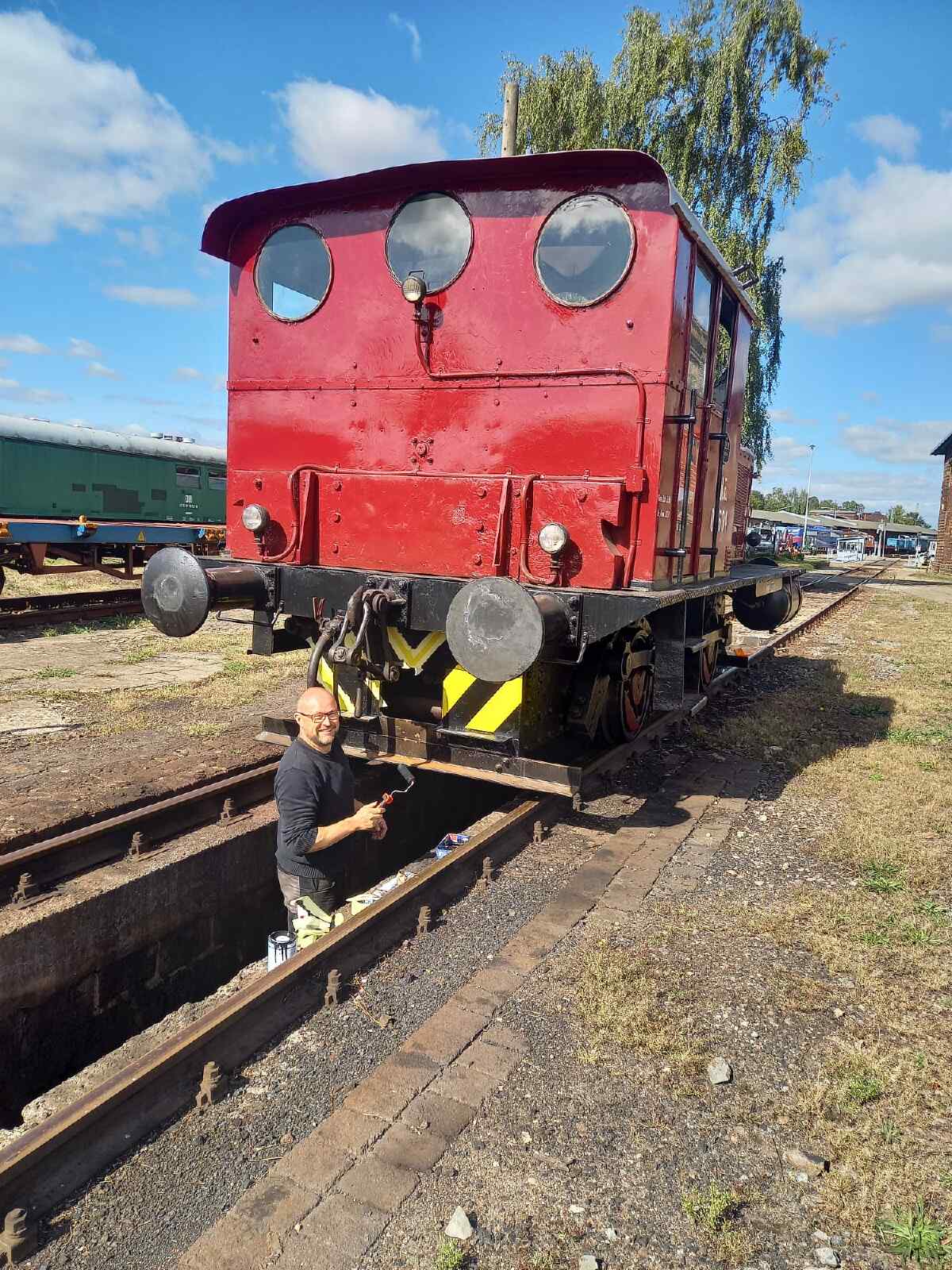 Auch unsere Diesellok 0604 (ex Osthannoversche Eisenbahn) erhielt ein wenig neue Farbe. Sie wurde mit dem früher üblichen gelb-schwarzen Warnanstrich an beiden Enden der Lok versehen.