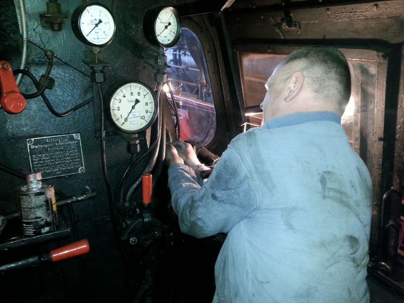 Außerdem wurde an den Achslagern gearbeitet, um den "reibungslosen" Lauf der Lokomotive sicherzustellen. Das ist mitunter eine sehr schmutzige Arbeit. Aber was soll es? Da lohnt sich das Duschen wenigstens.