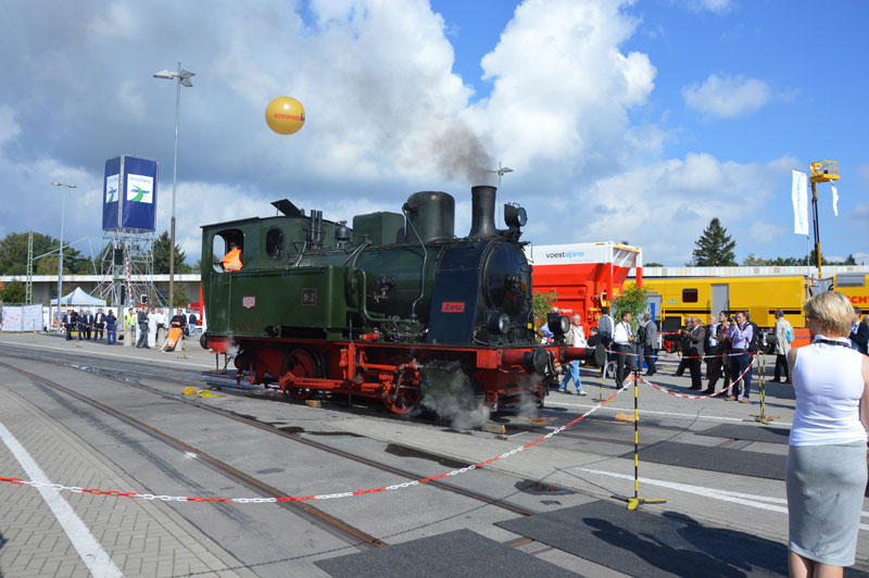 Unsere kleine Dampflok Emma soll wieder der heimliche Star der weltgrößten Messe für Eisenbahntechnik in Berlin werden. Diese Messe beginnt am 20.9. und endet am Sonntag darauf. Während dieser Zeit steht Emma für Führerstandsmitfahrten zur Verfügung. Da die kleine Lok nicht selbst den Weg nach Berlin auf eigener Achse zurücklegen kann, hat die Firma DB Schenker sie auf einen Schwertransporter verladen und zur Messe transportiert.
