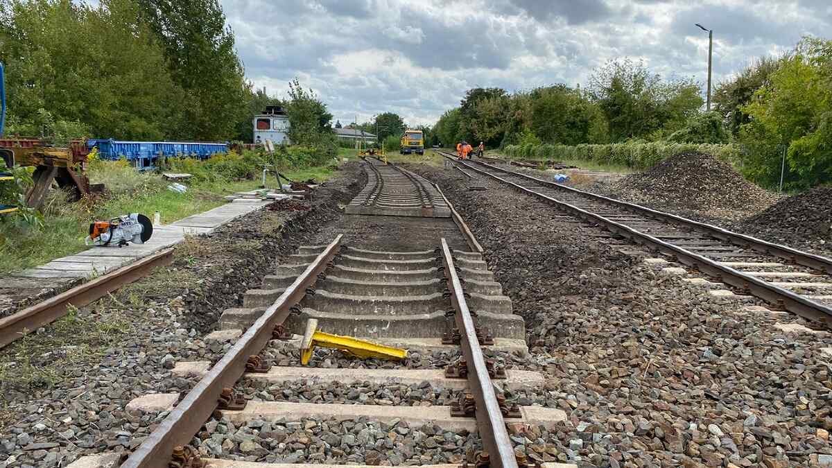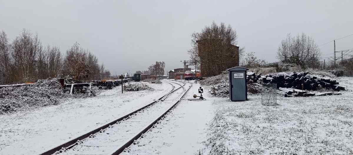 Mit Erschrecken haben wir festgestellt, dass unser letzter Newsletter schon wieder etliche Wochen alt ist. Das möchten wir hiermit ändern und Ihnen, liebe Freunde des Historischen Lokschuppens Wittenberge, eine kleine Übersicht über unsere Aktivitäten im Oktober 2023 geben. Der Monat war gestopft voll von Aktivitäten. Aber fangen wir von vorne an. Kontinuierlich arbeiten wir an der Erhaltung unserer Gleisanlagen. Denn was nützt das schönste Museum, wenn man die Fahrzeuge darin nicht sicher bewegen kann. Diesmal wurden Arbeiten auf der sogenannten Magdeburger Bahnhofseite durchgeführt. Dabei wurden von einer Gleisbaufirma viele Schwellen aus Holz gegen solche aus Beton getauscht. Außerdem wurden Reste von Weichen ausgebaut, die nicht mehr benötigt werden.